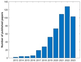 图3. 截至2023年11月21日Web of Knowledge中"Deep Eutectic Solvents Bioactive Compounds Extraction"的论文数量。