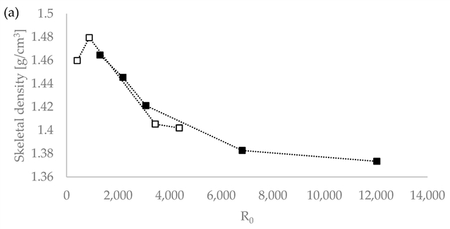 骨架密度随预处理严重度参数(R0)的变化趋势图,清晰展示了工艺条件的调控作用