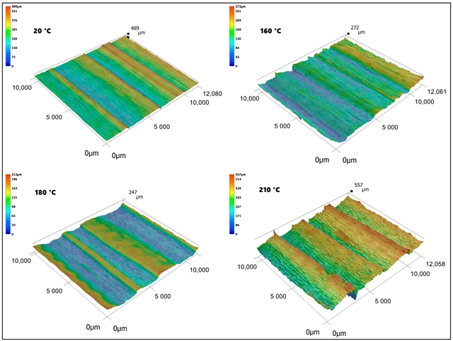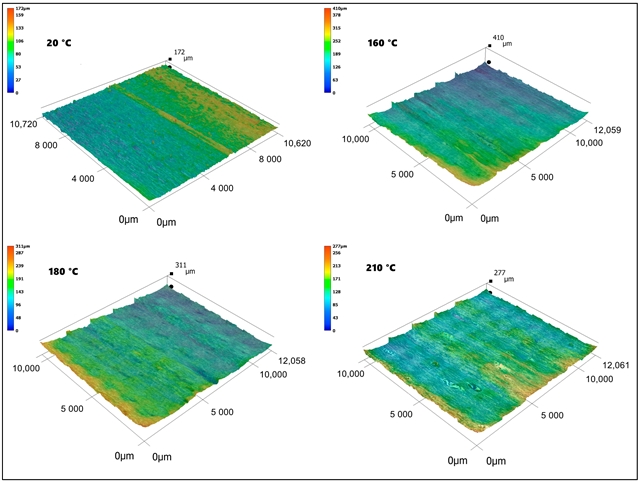 图6.热改性云杉木在加速老化600小时后的地形高程图。