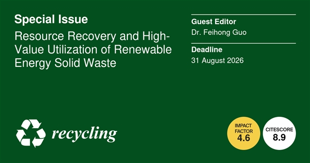 Recycling:可再生能源固体废物的资源回收与高值利用| MDPI 特刊征稿 |