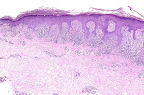 • 非楔形颗粒层增厚 + 真皮乳头规则增厚 → 更支持单纯性苔藓