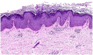 非楔形颗粒层增厚,真皮乳头增厚 |