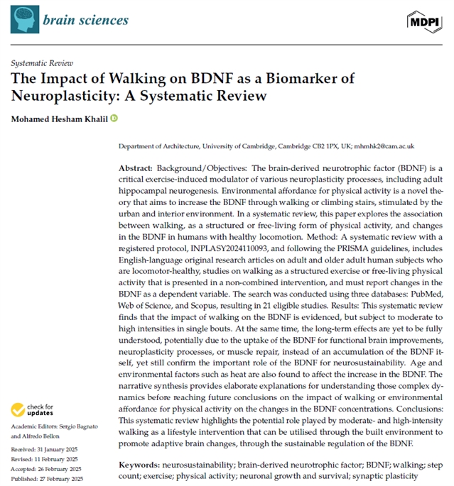 Khalil, M.H. The Impact of Walking on BDNF as a Biomarker of Neuroplasticity: A Systematic Review. Brain Sci. 2025, 15, 254.