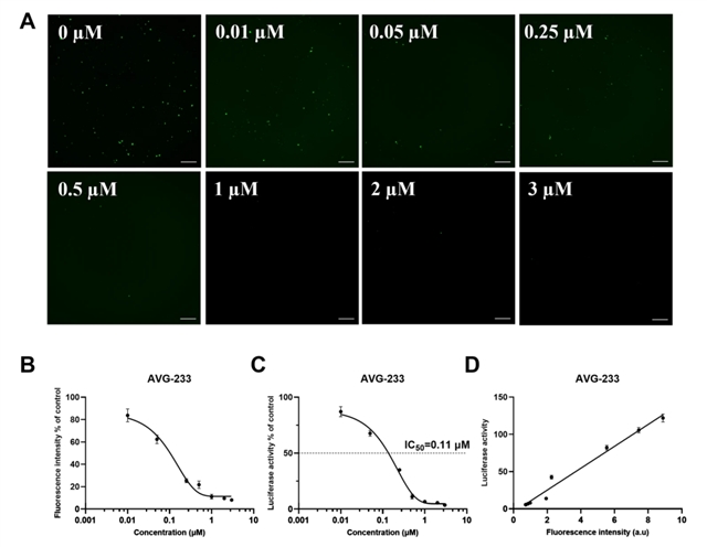 图 2 AVG-233处理下Mini-NLuc-sfGFP系统中报告基因信号分析