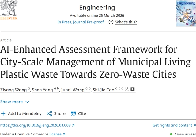 Ziyang Wang, Shen Yang, Junqi Wang, Shi-Jie Cao. AI-Enhanced Assessment Framework for City-Scale Management of Municipal Living Plastic Waste Towards Zero-Waste Cities. Engineering.