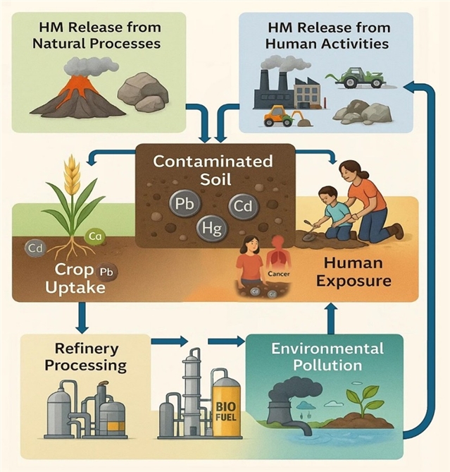图1. 土壤-植物-生物燃料-人类健康链中重金属的迁移过程