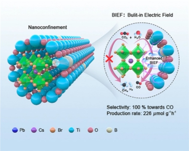 Title: Nanoconfined CsPbBr3 in Boron-Doped Mesoporous TiO2 Enables Built-In Electric Field Modulation for Fully Selective CO2-to-CO Photoconversion