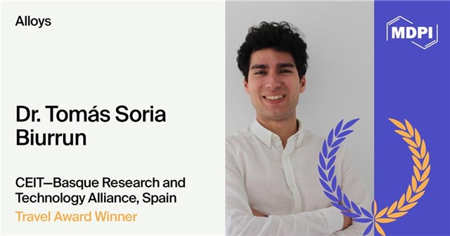 我们非常荣幸地宣布,西班牙CEIT—Basque Research and Technology Alliance (BRTA)研究中心的Tomás Soria Biurrun博士荣获 Alloys 期刊2026年度参会旅行奖 (Travel Award)!