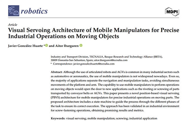 移动机械臂的视觉伺服架构:为移动物体的精准工业操作