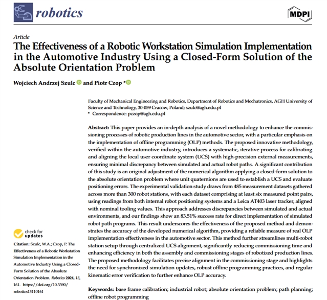 特刊link: https://www.mdpi.com/journal/robotics/special_issues/Industrial_Robotics
