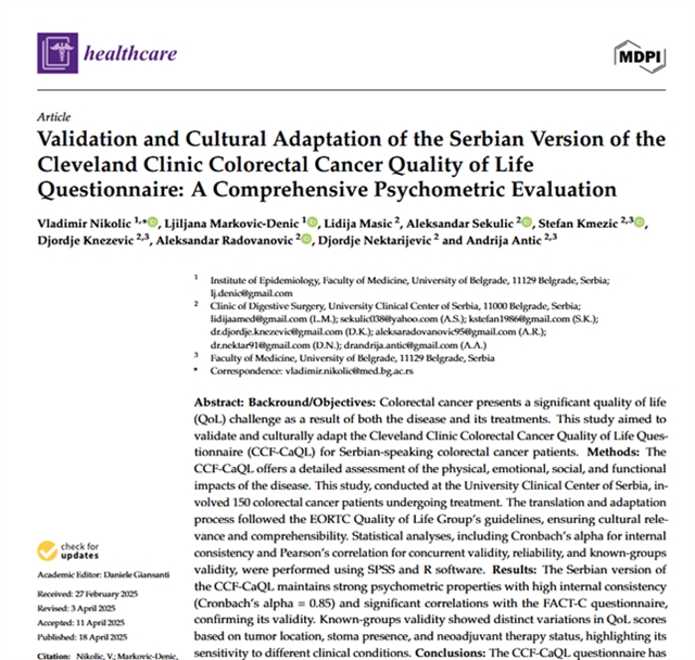 克利夫兰诊所结直肠癌生活质量问卷塞尔维亚版本的验证与文化调适:一项综合心理测量学评估