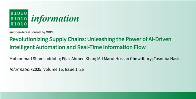 Shamsuddoha, M.; Khan, E.A.; Chowdhury, M.M.H.; Nasir, T. Revolutionizing Supply Chains: Unleashing the Power of AI-Driven Intelligent Automation and Real-Time Information Flow. Information 2025, 16, 26. https://doi.org/10.3390/info16010026