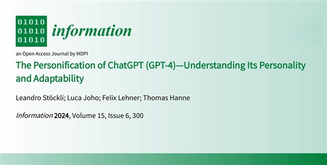 Stöckli, L.; Joho, L.; Lehner, F.; Hanne, T. The Personification of ChatGPT (GPT-4)—Understanding Its Personality and Adaptability. Information 2024, 15, 300. https://doi.org/10.3390/info15060300