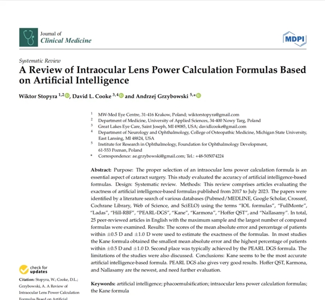 人工智能与机器学习技术的兴起,为提升人工晶体 (intraocular lens, IOL) 屈光度计算精度提供了新的研究方向。本文旨在系统回顾并比较近年来基于人工智能 (AI) 的IOL屈光度计算公式的准确性。
