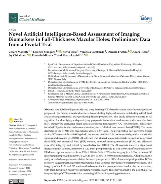 基于新型人工智能技术对全层黄斑裂孔影像生物标志物进行评估:一项关键性临床试验的初步数据