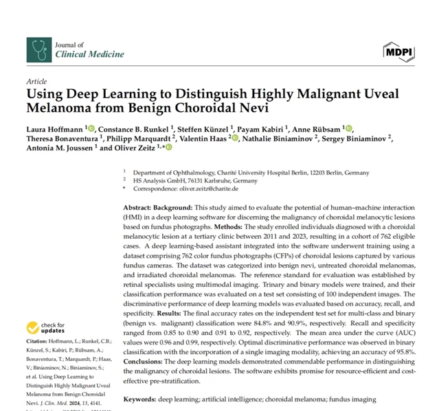 利用深度学习区分高度恶性的葡萄膜黑色素瘤和良性脉络膜痣