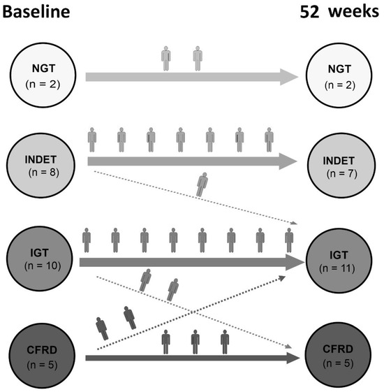 Bayona, A.; Lecumberri Pascual, E.; Vicente, S.; Maíz, L.; Morales, A.; Lamas, A.; Sánchez Rodríguez, C.; Yelmo, R.; Martín-Frías, M.; Martínez Vaello, V.; et al. Evaluation of Insulin Secretion and Continuous Glucose Monitoring in Patients with Cystic Fibrosis After Initiation of Transmembrane Conductance Regulator Modulator: A 52-Week Prospective Study. Diabetology 2024, 5, 554-565.