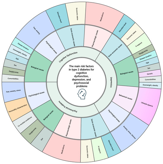 Randväli, M.; Toomsoo, T.; Šteinmiller, J. The Main Risk Factors in Type 2 Diabetes for Cognitive Dysfunction, Depression, and Psychosocial Problems: A Systematic Review. Diabetology 2024, 5, 40-59.