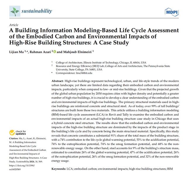 本文采取基于建筑信息模型(BIM)的生命周期评估(LCA)方法,对芝加哥某采用钢混复合结构的超高层建筑展开案例研究,旨在量化其隐含碳排放及环境影响。
