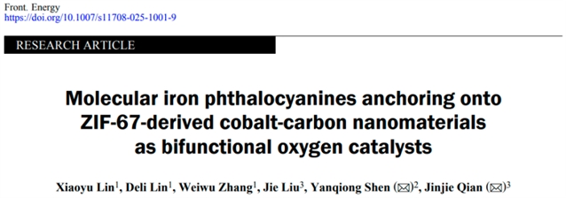 Xiaoyu Lin, Deli Lin, Weiwu Zhang, Jie Liu, Yanqiong Shen, Jinjie Qian. Molecular iron phthalocyanines anchoring onto ZIF-67-derived cobalt-carbon nanomaterials as bifunctional oxygen catalysts. Front. Energy, https://doi.org/10.1007/s11708-025-1001-9