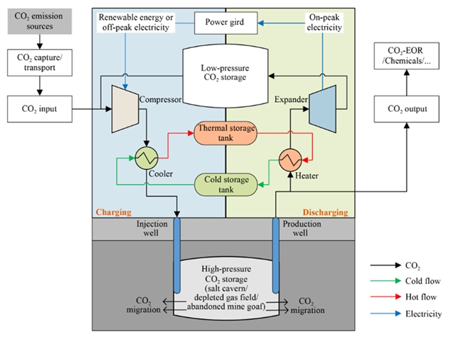 在"双碳"目标驱动下,可再生能源大规模并网对储能技术提出了更高要求。传统储能技术难以同时解决能源存储与碳排放控制两大挑战。压缩CO2储能(CCES)技术应运而生——以CO2为工质,利用其接近环境温度(31.4°C)的临界特性,实现高效液化和能量转换。更值得关注的是,CCES与碳捕集利用与封存(CCUS)技术的集成,正在开创一种全新的"碳-能源协同"模式:既储电、又固碳,实现基础设施共享与双重收益。上海交通大学碳中和发展研究院副院长、机械与动力工程学院研究员林千果研究团队近日在《ENGINEERING Energy》2026 年第 1 期发表综述文章,系统梳理CCES技术原理、系统构型与前沿进展,深度解析CCES-CCUS集成机制,为长时储能技术发展和碳中和路径提供重要参考。