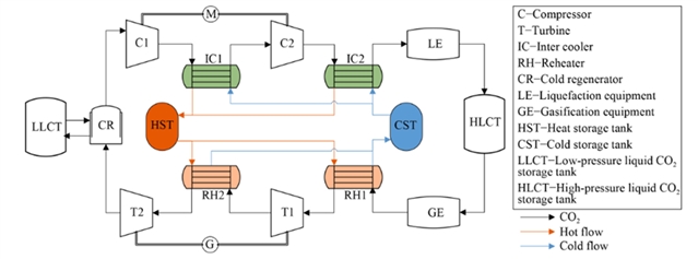 图1 液态 CO2储能(LCES)系统流程图