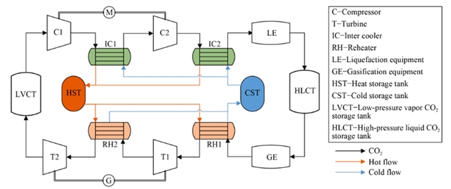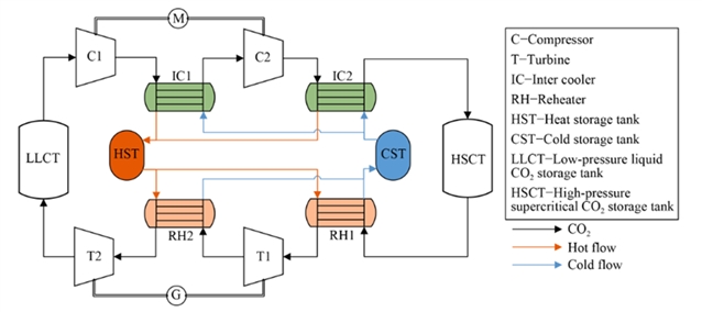 图3 超临界压缩 CO2储能(SC-CCES)系统流程图