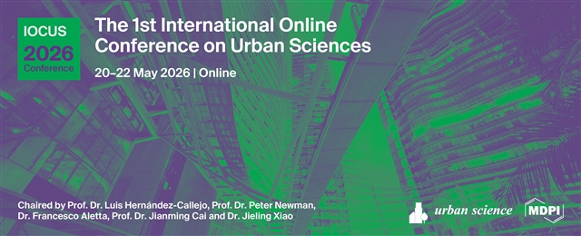 由MDPI Urban Science 期刊(ISSN: 2413-8851, IF: 2.9,JCR–Q1 (Geography) /CiteScore–Q1 (Urban Studies))主办的第一届国际城市科学线上会议(The 1st International Online Conference on Urban Sciences ∣ IOCUS 2026)将于2026年5月20至22日在线上举办。本次会议将围绕会议议题涵盖城市规划与设计,城市环境与可持续发展,城市经济与资源管理等多维领域,与学者携手探索城市科学领域的创新之路与学术新境。诚邀各位专家学者踊跃注册,共赴城市科学前沿之约!